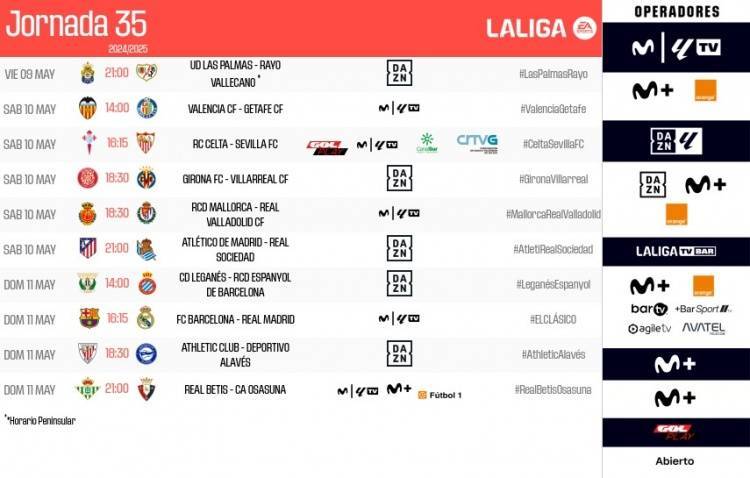 黄金时间!西甲第35轮全部场次时间:巴萨vs皇马5月11日22:15