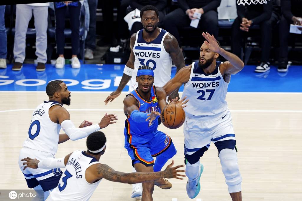 无奈的是,西决面对雷霆,狼队彻底撞倒了自己能力的天花板,尽管,爱德华兹和兰德尔使出了浑身解数,狼队的配角们在攻防两端也足够拼命。但在天然的劣势面前,只靠努力,只靠精神层面的激励,却并不足以弥合战力的鸿沟。